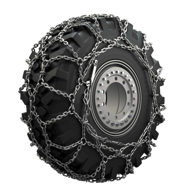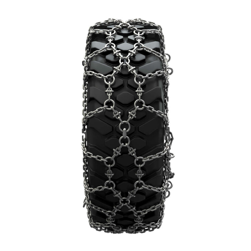 Řetěz s dvojitým kosočtvercovým vzorem a výztužemi doporučený pro vozidla zimní údržby.